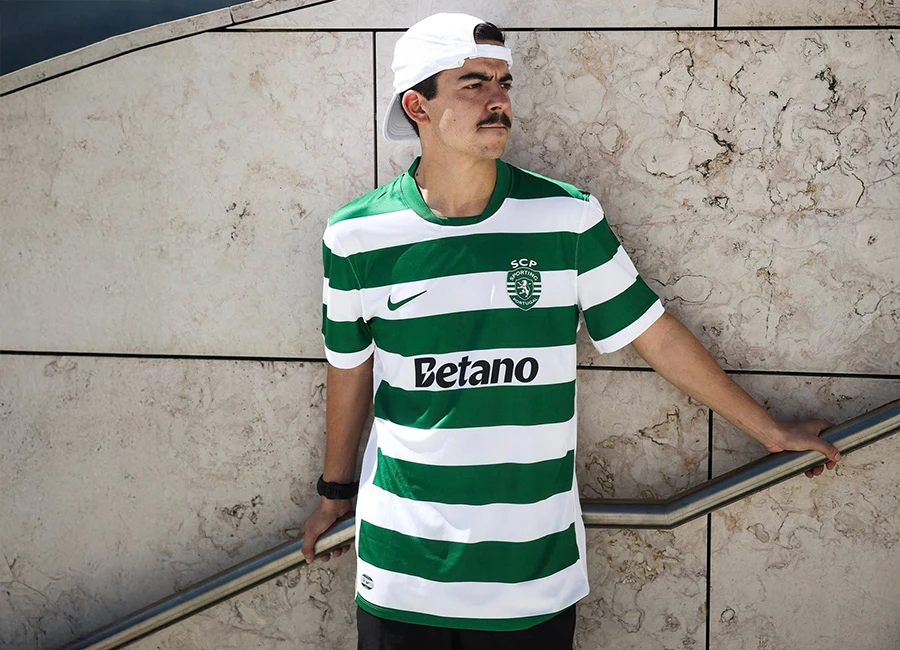 The jersey retains the club’s classic green and white horizontal hoops, presented in a wide format across the body and sleeves.
